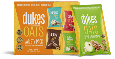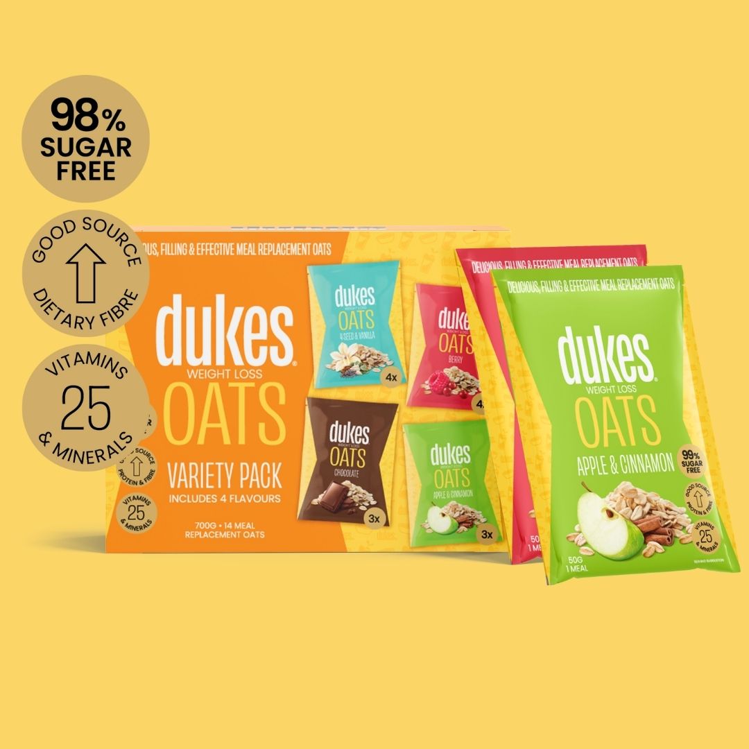 Begin your mornings with a delicious, satisfying breakfast of Dukes® Variety Pack of Oats. Each bowl is packed with protein, fibre & is 99% sugar free to keep you full until lunch.