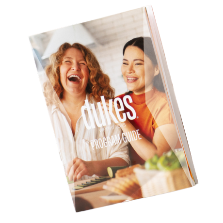 A 36 page program guide about the Dukes Weight Loss Program. The physical booklet comes in your order and shows you how to get started on the program, recipe and snack ideas, weight loss tips and tricks and FAQs!